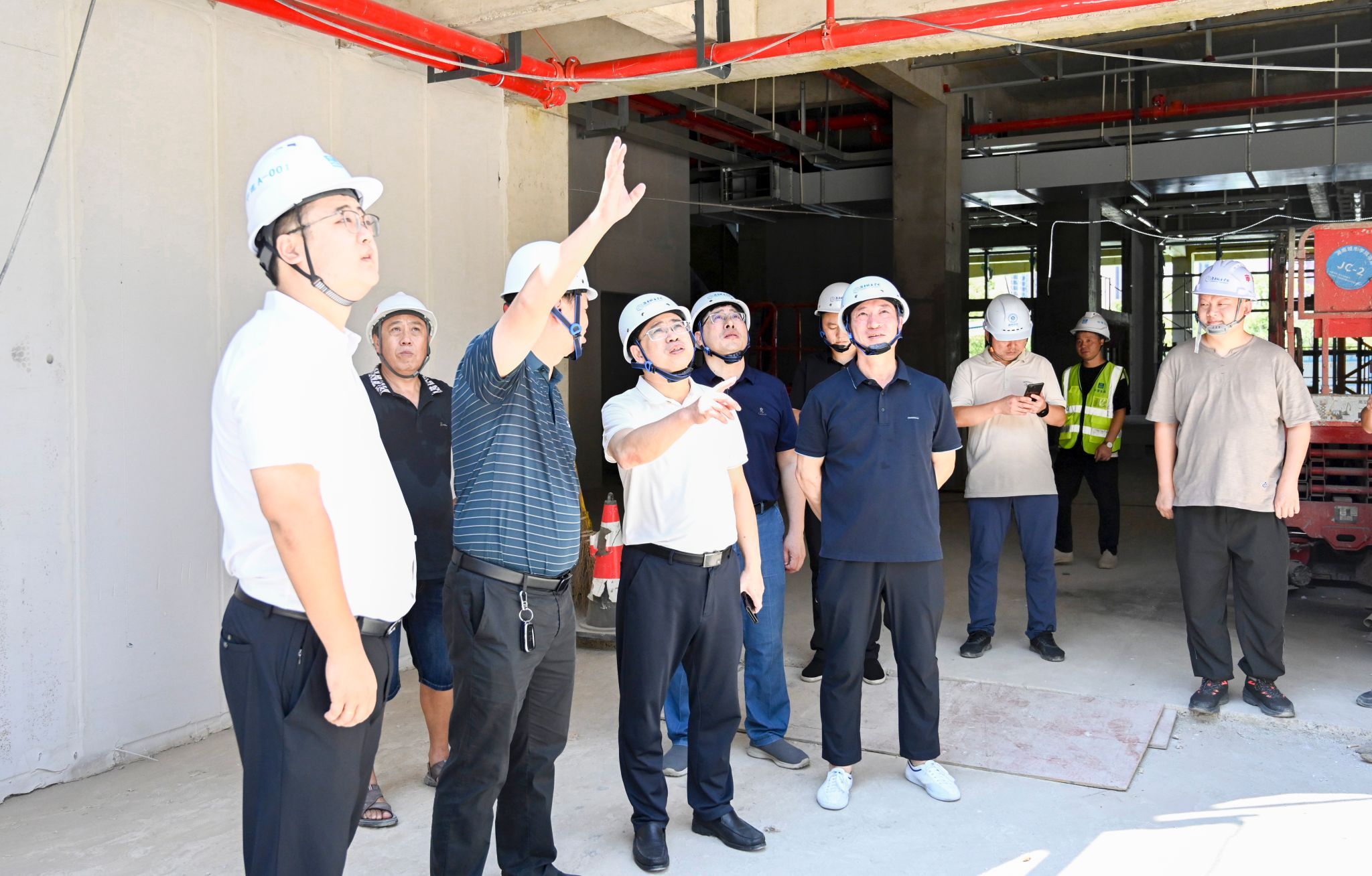 何振深入A栋产教融合大楼B栋新文科综合实训大楼、体育教学中心等重点项目施工现场,听取相关人员对工程进展、质量管控、安全措施等方面的汇报,仔细检查现场施工情况,深入了解施工质量与施工安全防范措施。