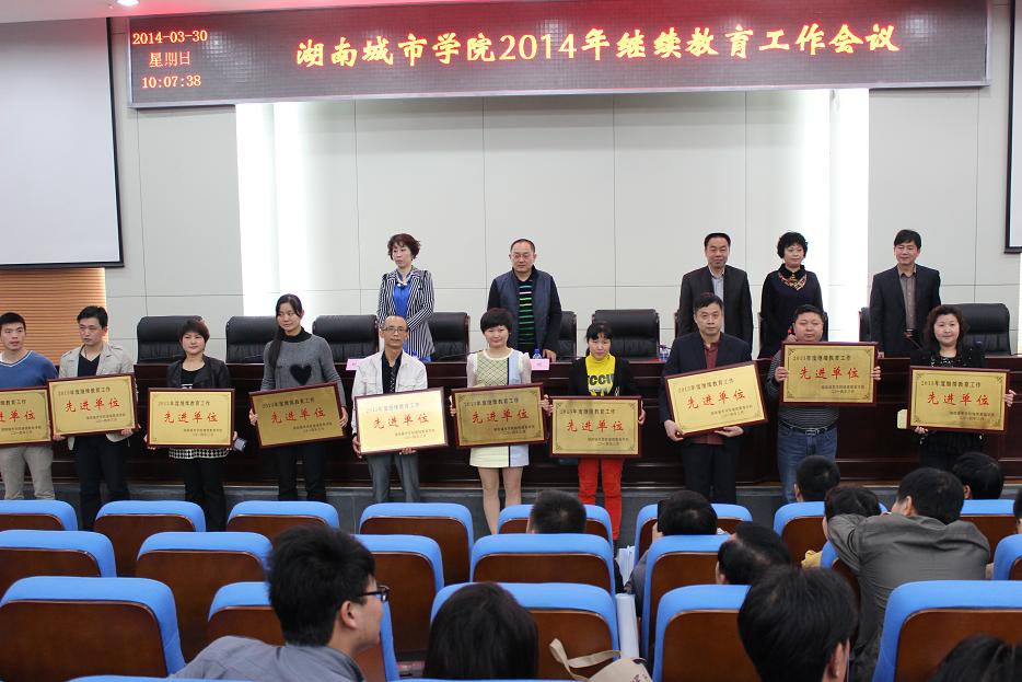 廖铁宣读了2013年度我校继续教育工作先进单位和先进个人名单,共有10个合作单位和18位同志获得了先进单位以及先进个人称号。