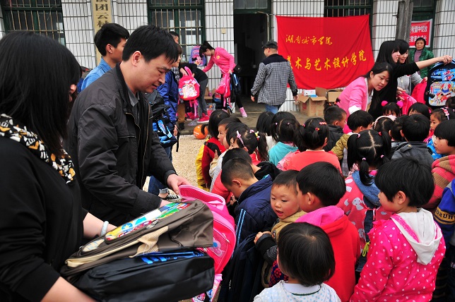 美术与艺术设计学院和团云小学的“缘分”早在2012年就开始了。学院通过《益阳日报》开展的“送出一本书、温暖一颗心”为农村学生募集精神食粮活动与团云小学搭起了爱心桥梁,每年都会以各种方式对团云小学进行帮扶。