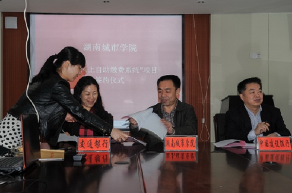 最后,遵循“平等自愿、互惠互利”的原则,学校、中国建设银行、交通银行相关领导共同签署了“学生网上自助缴费系统”合作协议书,签约后我校“学生网上自助缴费系统”项目正式进入建设阶段。