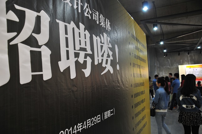 (本网讯)不用出门,在校园就能够参加招聘会。4月29日下午,苹果装饰等11家知名装饰设计公司“组团”在美艺楼108教室举办了针对美术与艺术设计学院学生的专场招聘会。