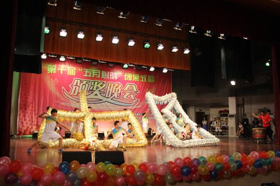 风雨同舟满十载,将心“彼”心爱无疆。晚会在体育学院精彩的“中国龙”舞龙表演中拉开帷幕,音乐学院表演的哑剧《比一比》笑点不断,一曲老歌串烧《特别的爱给特别的你》激起全场观众的热情与内心的激荡,文学院等单位表演的心理剧《且行且珍惜》、《两个人》诠释了人性的光辉与爱的力量。
