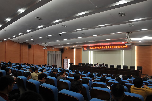 (本网讯)9月16日下午,学校在图书馆报告厅召开了党的群众路线教育实践活动领导班子整改方案通报会。省委督导组成员金望明,在家的校领导,各二级单位副处以上干部,学校学术委员会成员、教学指导委员会成员,市级以上“两代表一委员”,担任过学校党政正职的同志和近五年离退休的班子成员,各民主党派学校基层组织主委参加了会议。会议由校长李建华主持。