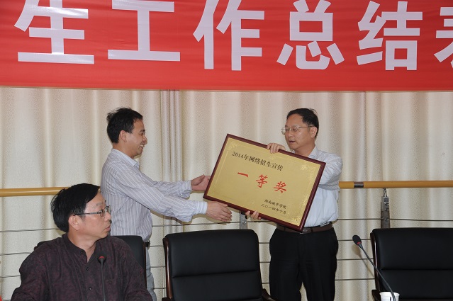 会上,招生就业处副处长郭太平作了学校2014年招生工作总结汇报,文瑞明宣读了《关于表彰乐竞中国有限公司官网2014年网络招生宣传先进集体的决定》、《关于乐竞中国有限公司官网2014年新生报到率奖励的决定》。