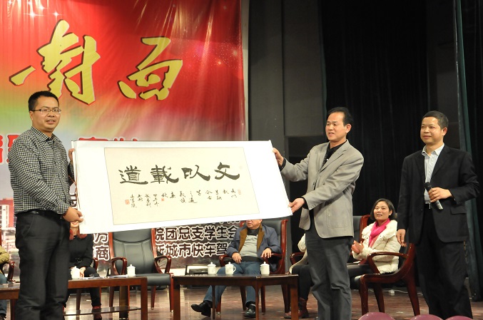 校友臧远科向文学院赠送亲笔书法卷轴