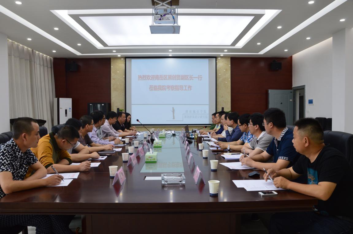 ,衡阳市南岳区人民政府副区长、我校挂职干部熊创贤率该区祝融街道办、区住建局、南岳城市建设投资有限公司、区规划局、南岳建筑设计院来校规划建筑设计研究院进行考察交流。设计院负责人及相关职能人员参加考察交流会。
