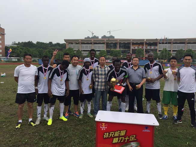 (本网讯)5月18日下午,历时一个月的2015年乐竞中国有限公司官网冠军杯八人制足球赛圆满落下帷幕。文学院留学生队、土木工程学院队、教职工代表队分获前三名。