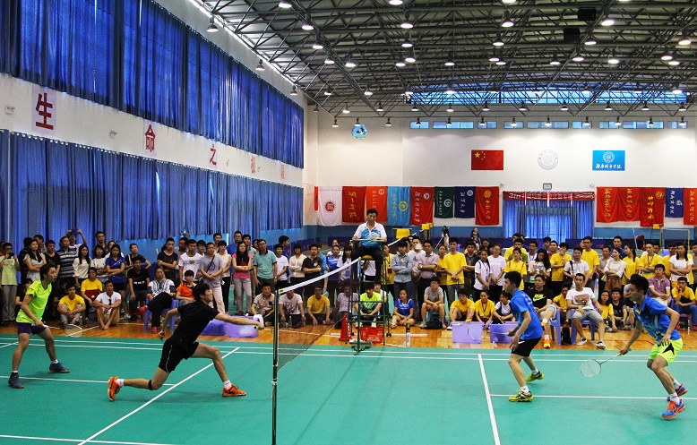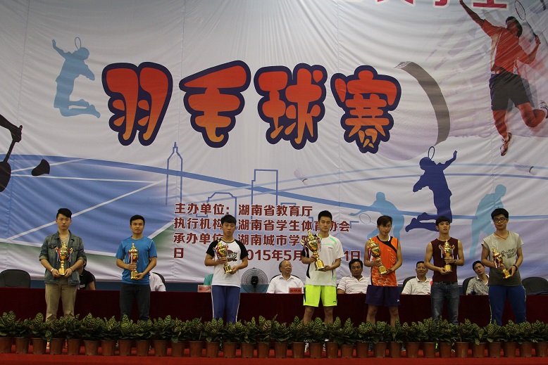 下午,2015年湖南省大学生羽毛球比赛决赛在我校羽毛球馆上演。