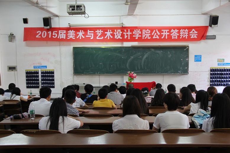 ,美术与艺术设计学院2015届毕业设计(创作)公开答辩会在第一教学楼和美艺楼举行。与往届答辩不同的是,除了专业老师以外,答辩现场还多了几位嘉宾评委。他们是美术与艺术设计学院三家就业基地三星·九艺装饰公司、三星品高集团、益阳市装饰协会的6位高管。
