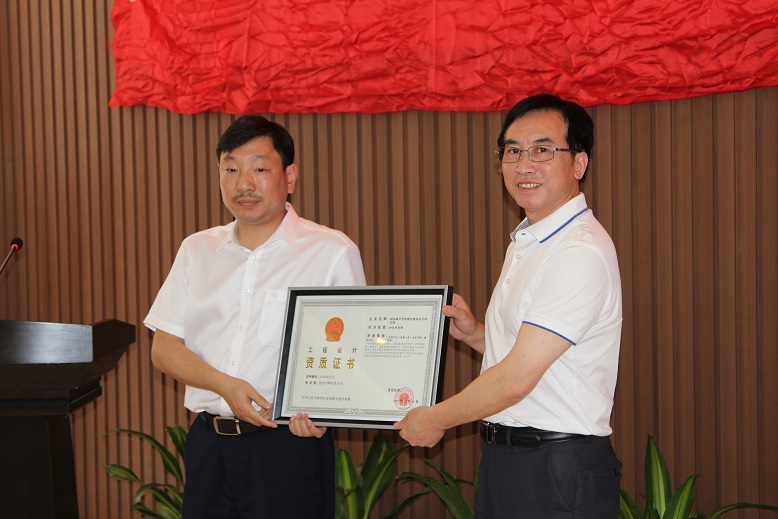 益阳市住房和城乡建设局副局长莫胜波现场为设计院授市政行业(道路工程)专业资质牌。