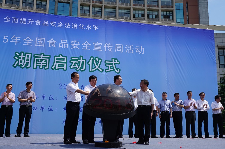 副省长李友志携相关领导共同按下启动球后,标志2015年全国食品安全宣传周正式在湖南启动。