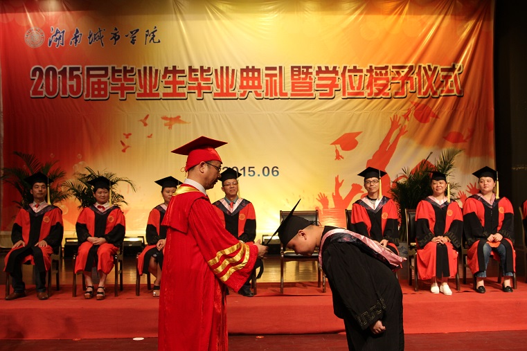党委副书记、副校长孟昭武宣读了2015届毕业生学位授予决定。随后校长李建奇为全体获得学士学位证书的毕业生一一颁发了学位证,学位授予仪式持续了2天。(王宗新)