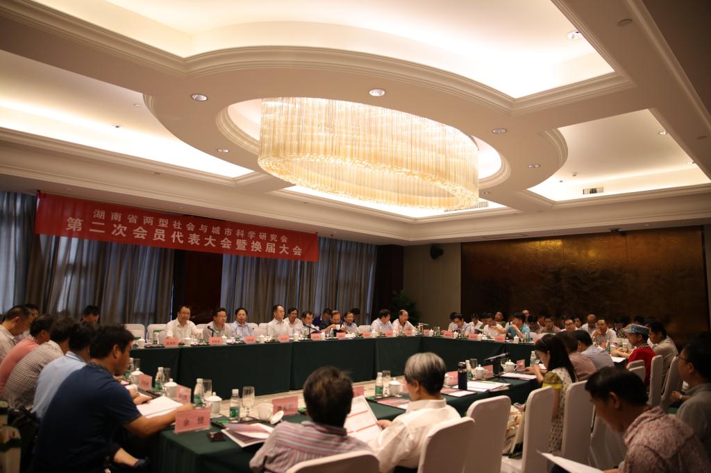(本网讯)8月15日下午,湖南省两型社会与城市科学研究会第二次会员代表大会暨换届大会在长沙举行。我校党委书记罗成翼受聘为研究会名誉理事长,校长李建奇当选为第二届理事会理事长。