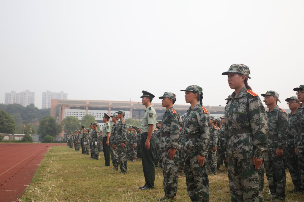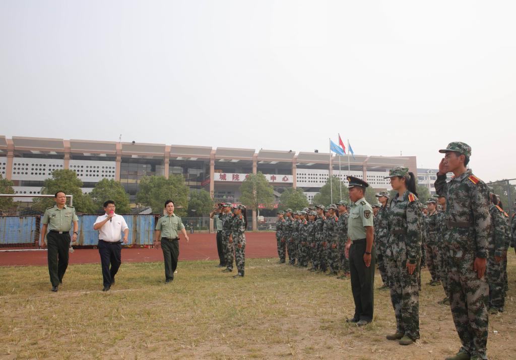 党委书记罗成翼在武装部部长贺正宜和郑冰上校的陪同下,检阅了由参训新生组成的方队。