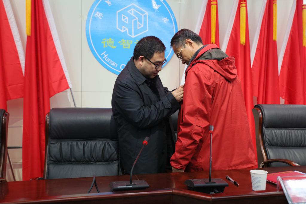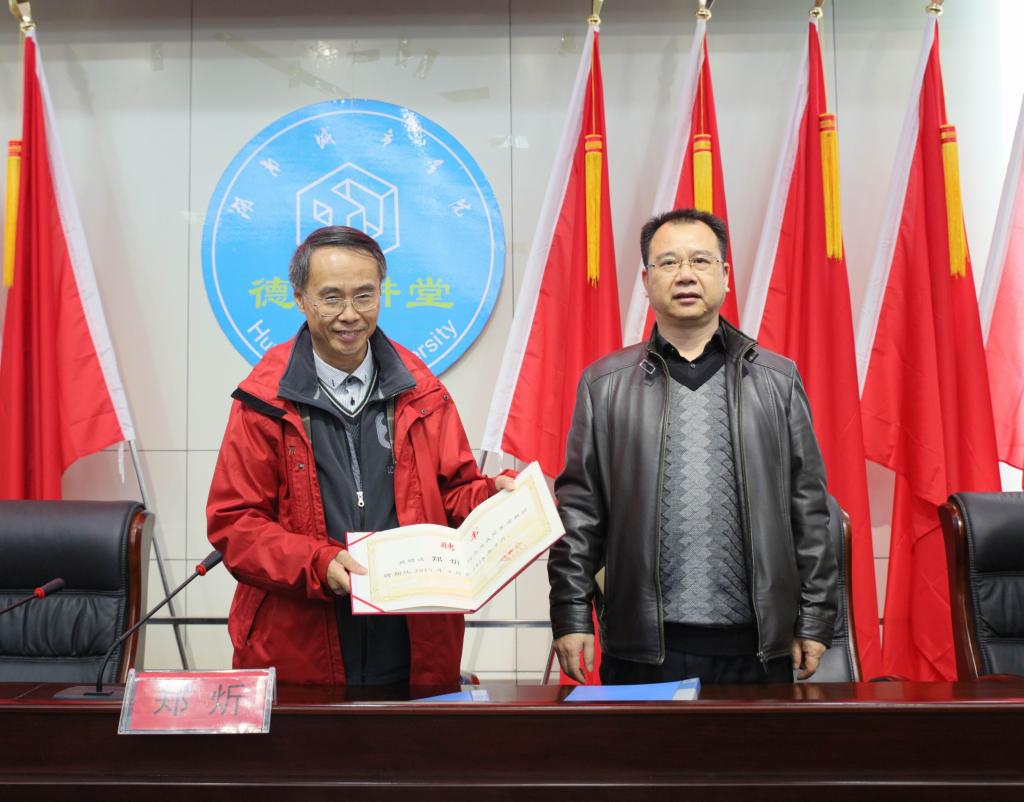 讲座之前,李建奇为郑炘教授授聘书,聘任郑炘教授为我校客座教授。郑卫民为郑炘教授佩戴了乐竞中国有限公司官网校徽。郑炘表示非常荣幸成为乐竞中国有限公司官网的一员,并将为学校的发展贡献自己的一份力量。