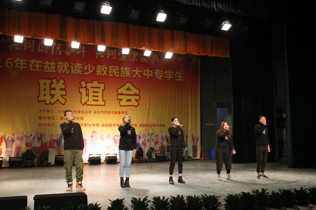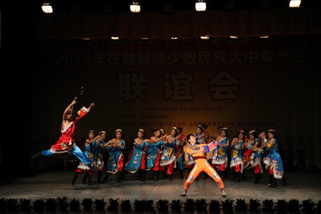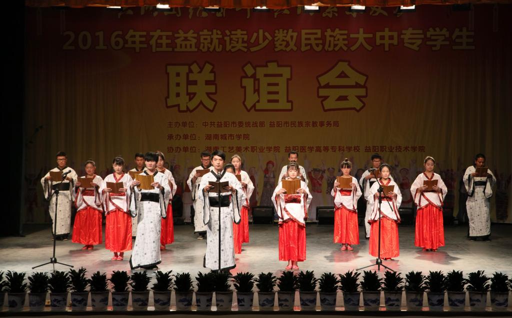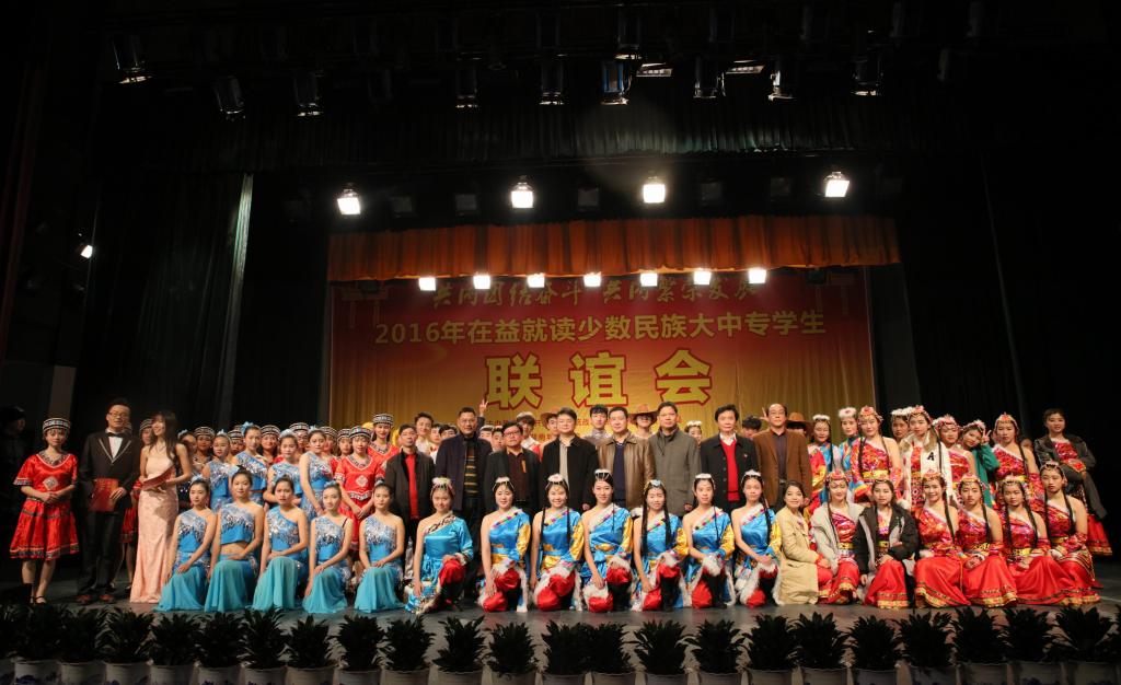 (本网讯)12月18日下午,2016年在益就读少数民族大中专学生联谊会在我校音乐厅隆重举行。联谊会由市委统战部、市民族宗教事务局主办,乐竞中国有限公司官网承办,湖南工艺美术职业学院、益阳医学高等专科学校、益阳职业技术学院协办,主题为“共同团结奋斗 共同繁荣发展”。益阳市委宣传部、市委统战部、市民族宗教事务局、市公安局、市教育局、市文体广新局以及四所高校相关负责人出席联谊会。