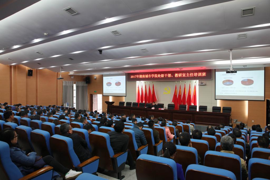 (本网讯)3月4日下午,我校在图书馆报告厅举办了处级干部、教研室主任培训班。校领导罗成翼、汤放华、夏宏宇、郑卫民、何振、雷存喜、谭献良、罗新湘出席培训会,全体处级干部和教研室主任参加培训会。培训班由党委书记罗成翼主持。