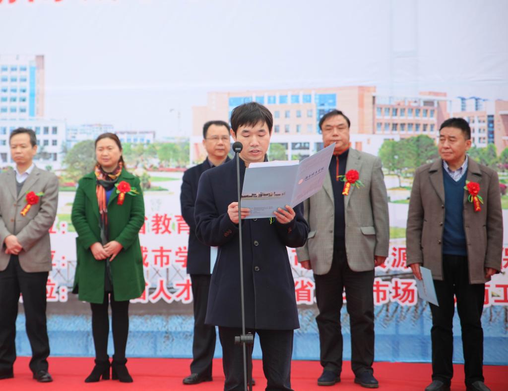 上午9点半,供需见面会开幕式在兴城广场举行。开幕式由副校长郑卫民主持。