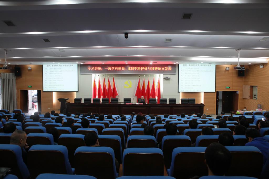 (本网讯)3月28日下午,浙江工业大学万跃华教授应邀为我校教师作了一场题为“一流学科建设、ESI学科评价与科研论文发表”的讲座。校长李建奇、校党委副书记汤放华、副校长雷存喜,发展规划处、科研处、教务处、教学质量监控与评估中心、工程训练中心负责人以及各学院院长、副院长、教授、博士、教研室/实验室主任参加了讲座。讲座由李建奇主持。