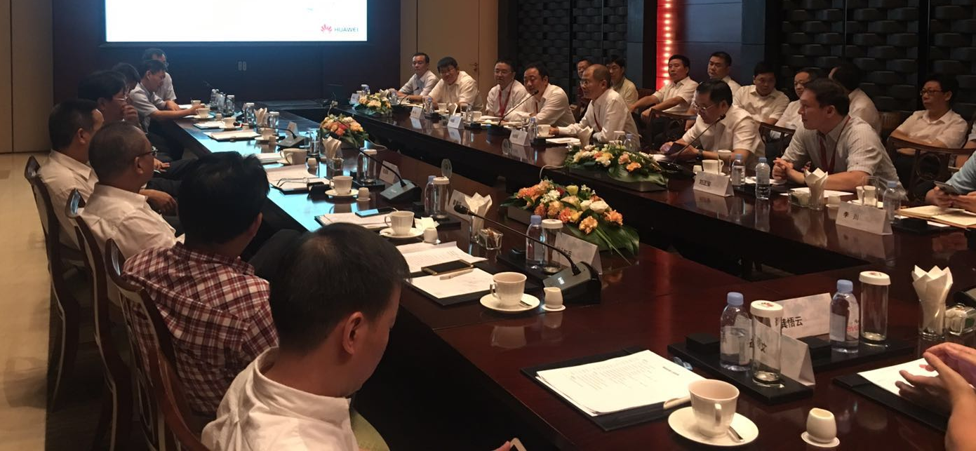 华为技术有限公司副总裁、轮值CEO、我校校友徐直军对罗成翼一行的到来表示热烈欢迎,并介绍了公司的基本情况及特色。罗成翼介绍了我校的基本情况和学科建设、人才培养、校办产业等方面特色。随后,我校与益阳市政府、华为技术有限公司进行了三方交流,达成了在我校建设新型智慧城市研究院的共识。由华为技术有限公司提供技术支撑,益阳市政府提供项目支持,我校负责组建专业研发团队,三方共同筹措研发经费。