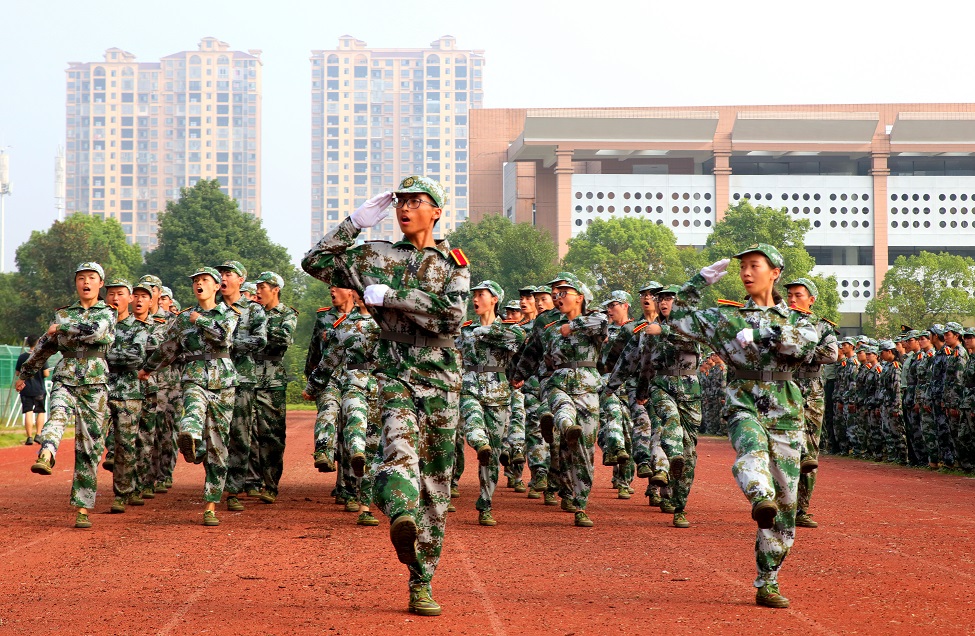 伴随着振奋人心的《分列式进行曲》,由各参训连队组成的方队,迈着矫健而整齐的步伐,昂首阔步的依次通过主席台,接受学校领导和广大师生的检阅。