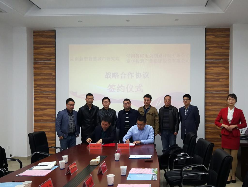 (本网讯)3月22日下午,我校湖南新型智慧城市研究院(简称研究院)与湖南省邮电规划设计院有限公司(简称邮电设计院)、泰华智慧产业集团股份有限公司(简称泰华智慧)等多家合作伙伴分别签订了战略合作协议。副校长郑卫民,研究院院长李梦醒,邮电设计院总经理助理孙晓亮,泰华智慧长沙分公司总经理张明等出席签约仪式。仪式由李梦醒主持。