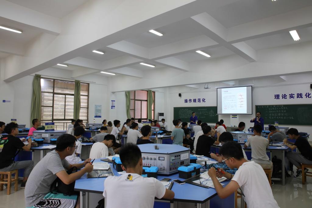 目前基地共有电工实训和电子实训两个实训区,实训区面积约600平方米,有SL-110型一体化电工电子技能工作岛,RG-DZ-II型电子技术综合创新实验台,示波器等相关实践教学仪器等实践教学仪器450多台套,价值约300万元,单次可供198人同时进行电工电子实训。基地现有实验教师18人,其中副高以上职称教师7人,中级职称11人,8位实验室实践指导教师属于双师型教师,有丰富的实践教学经验和扎实的工程实践能力。(曾强)