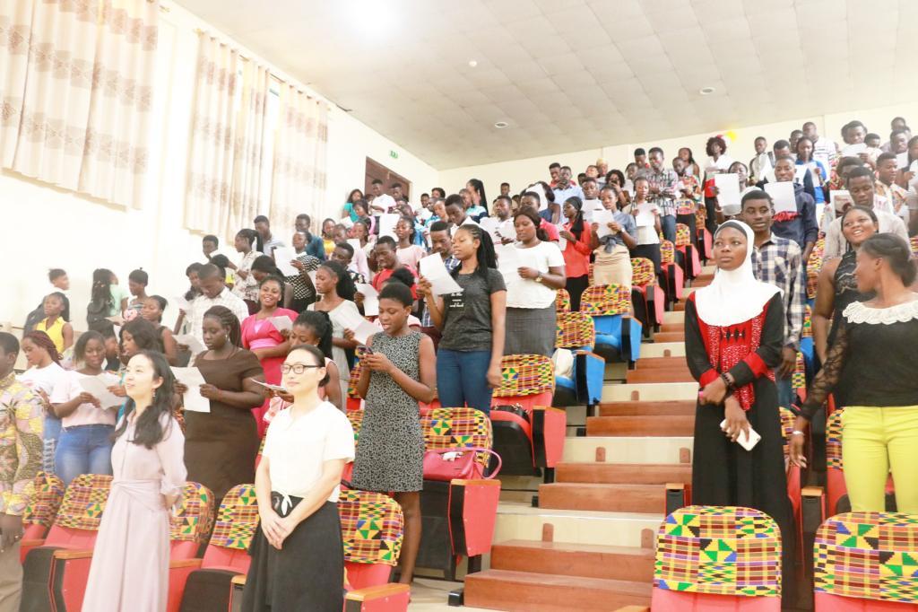 (本网讯 )加纳当地时间2019年3月26日下午,加纳海岸角大学孔子学院“我和中国”主题竞赛颁奖仪式在海岸角大学语言中心Auditorium大礼堂举行。出席本次颁奖仪式的有海岸角大学孔子学院中方院长胡亮才、加方院长伊斯梅尔·门萨(Prof. Ishmael Mensah)以及孔院全体教师和工作人员。200多名孔院学生参加了本次活动。