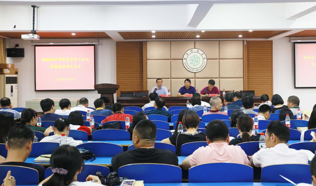 (本网讯)2019719日,我校在二办公楼310召开了党务学工系统暑期读书动员大会。党委书记罗成翼、党委副书记汤放华、副校长雷存喜,党委委员李斌、袁志成出席会议,二级学院党委书记、副书记、辅导员,党政办、组织部、宣传部、学工部、招生就业处、团委全体人员以及教务处、科研处、马克思主义学院部分人员参加会议。会议由汤放华主持。