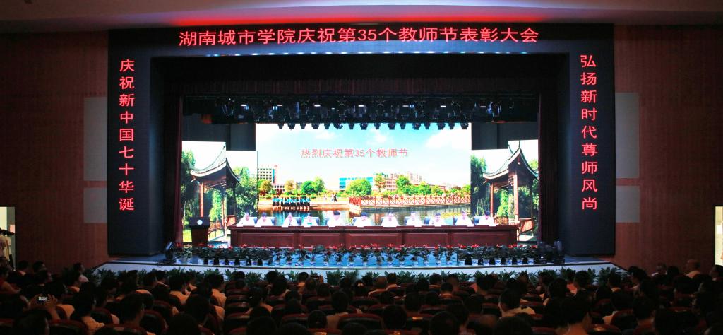 (本网讯)2019年9月7日上午,在第35个教师节到来之际,我校在学校音乐厅召开庆祝第35个教师节表彰大会。全体校领导,各职能部门、二级学院负责人及教师代表400余人参加会议。党委书记罗成翼在会上发表讲话。会议由校长李建奇主持。