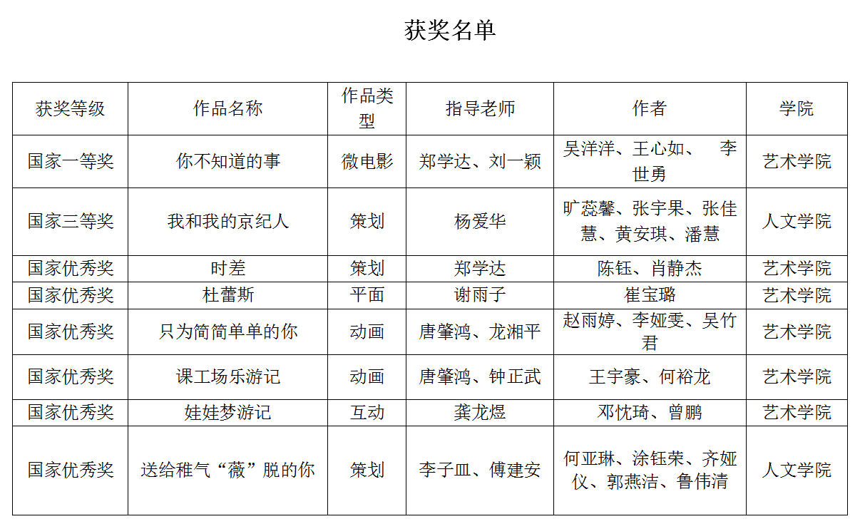全国大学生广告艺术大赛是由教育部高等教育司指导、教育部高等学校新闻传播学类专业教学指导委员会、中国高等教育学会广告教育专业委员会共同主办的全国高校文科大赛,是迄今为止全国规模大、覆盖高等院校广、参与师生人数多、作品水准高的国家级大学生赛事。在此次比赛中有来自全国一千三百多所高校参加,数十万学生提交作品,我校学子不惧挑战,勇于拼搏,最终在国赛上斩获8奖项,这是我校高度重视实践型和创新型人才培养的体现(郑学达)