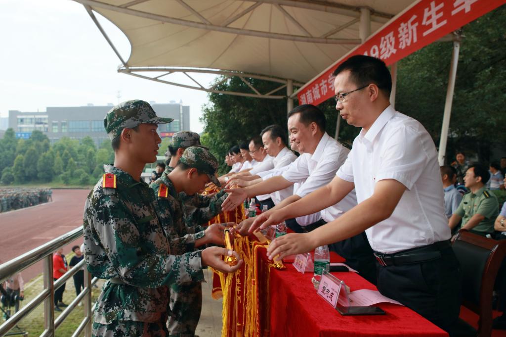 党委副书记汤放华宣读了《乐竞中国有限公司官网2019级新生军训表彰决定》:体育学院、机械与电气工程学院、建筑与城市规划学院、艺术学院获得训练先进营称号,机械与电气工程学院100连等11个连队获训练先进连称号,材料与化学工程学院等4个营获内务优胜营称号,市政与测绘工程学院7连等11个连队获内务优胜连称号,教师教育学院获优秀组织奖;毛欢欢等被8人被评为优秀辅导员及工作人员,夏凤瑞等28人被评为优秀教官,刘泉蔚等216人被评为军训标兵。与会校领导为受表彰的集体和个人颁发了锦旗。