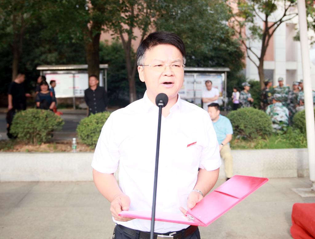 大会在庄严、雄壮的国歌和校歌声中拉开帷幕。党委书记罗成翼检阅了由2019级参训新生组成的方队。