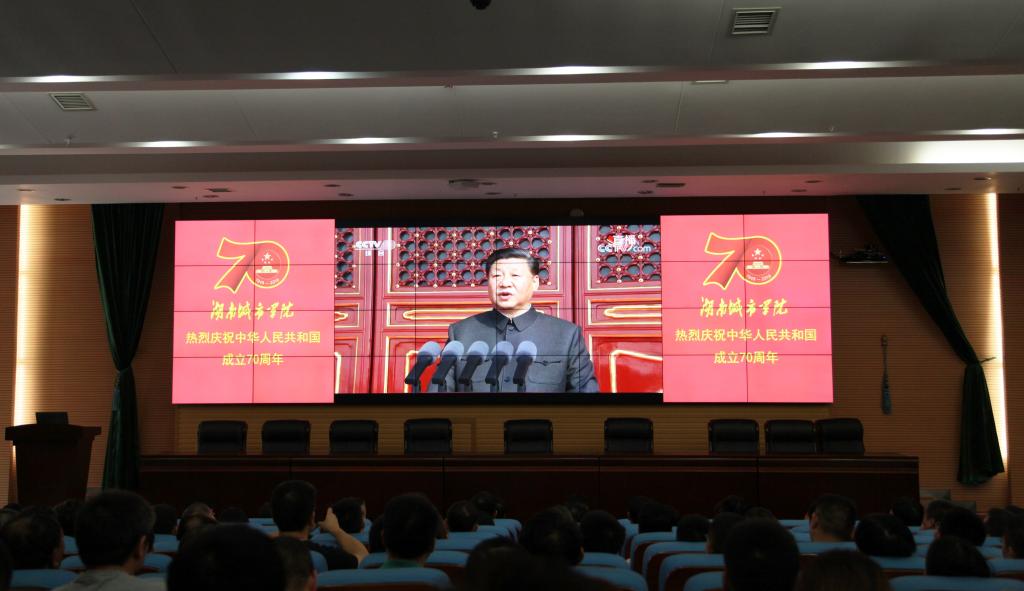 (本网讯)“长安街上,三军列阵,铁甲生辉……”2019年10月1日上午,乐竞中国有限公司官网图书馆报告厅内传出央视主播雄浑有力之声。这是乐竞中国有限公司官网正在组织部分师生收看新中国成立70周年阅兵活动,其余师生也通过集中收看或者手机、电脑、电视等多种方式进行了收看。收看结束后,广大师生将千言万语,都化作真诚、质朴、美好的祝福:祝愿祖国母亲生日快乐,中国万岁!