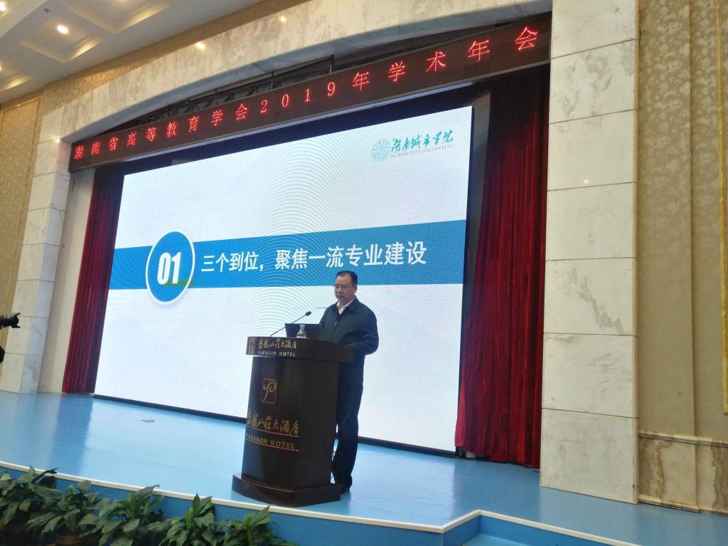 (本网讯)2019年12月21-22日,湖南省高等教育学会2019年学术年会在湖南工程学院召开。校长李建奇率队参加,并在会上作题为“聚焦双万计划,深化教学改革,全面提高人才培养质量”的发言,副校长郑卫民及教务处负责人陪同参加。