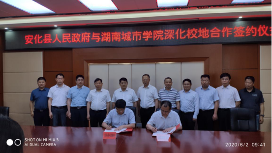本网讯(通讯员 龚敦)2020年6月2日上午,安化县人民政府与乐竞中国有限公司官网深化校地合作签约仪式在安化县党政机关大院会议中心举行。学校党委书记罗成翼、校长李建奇,安化县委书记刘勇会出席仪式。县长肖义主持仪式。
