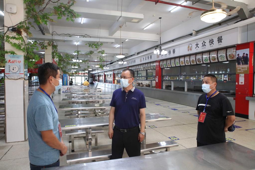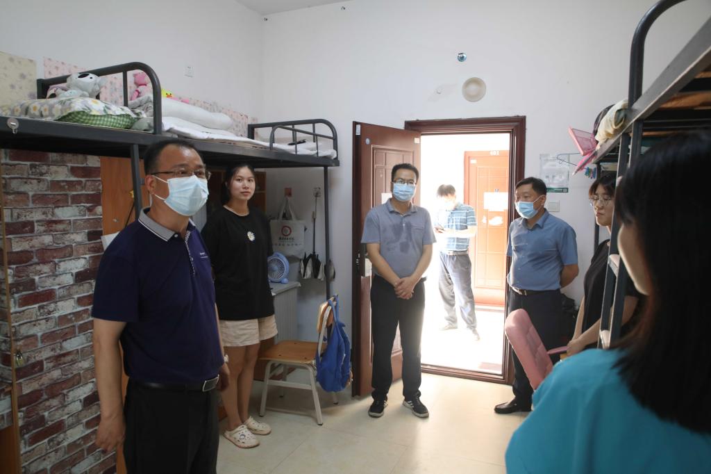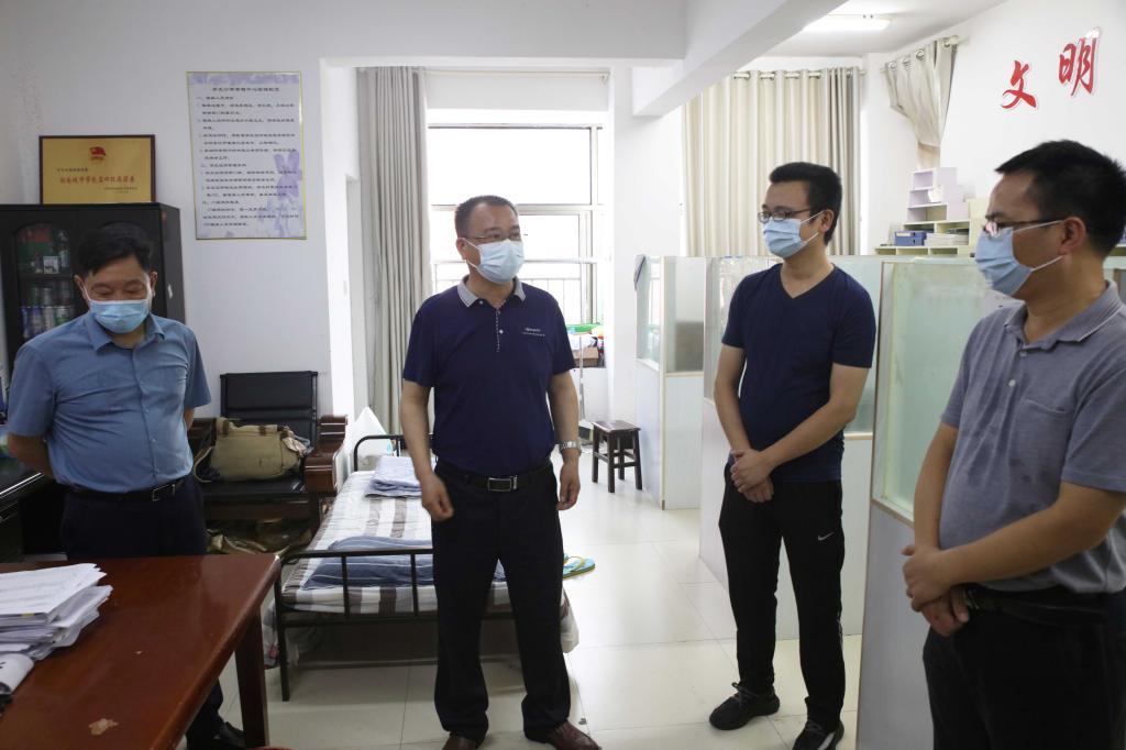 本网讯 2021年8月6日下午,烈日炎炎,党委书记李建奇,副校长夏宏宇、谭献良、袁志成,党委委员、组织部部长吕贤军一行前往校园南门、招生就业处、疫情防控办、学生宿舍、食堂、高压配电室和总值班室等场所,看望慰问了奋战在疫情防控一线的工作人员,对他们的坚守和付出表示由衷感谢。