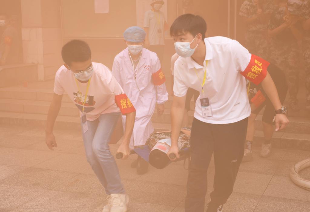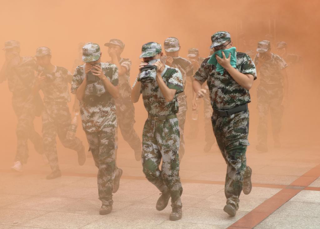 本网讯(记者 文彦波 摄影 博夕)“铃!铃!铃!”9月28日中午12时许,乐竞中国有限公司官网第二教学楼内突然传来一阵急促刺耳的警报声,滚滚浓烟从楼内各处漫出,一名名身着迷彩装的青年学子用湿毛巾捂住口、鼻,弯着腰迅速从楼内撤出,与此同时,校园里响起消防车的警笛声……