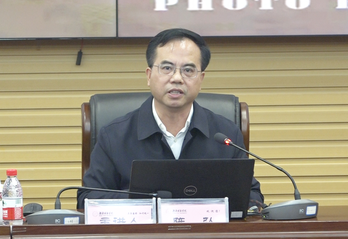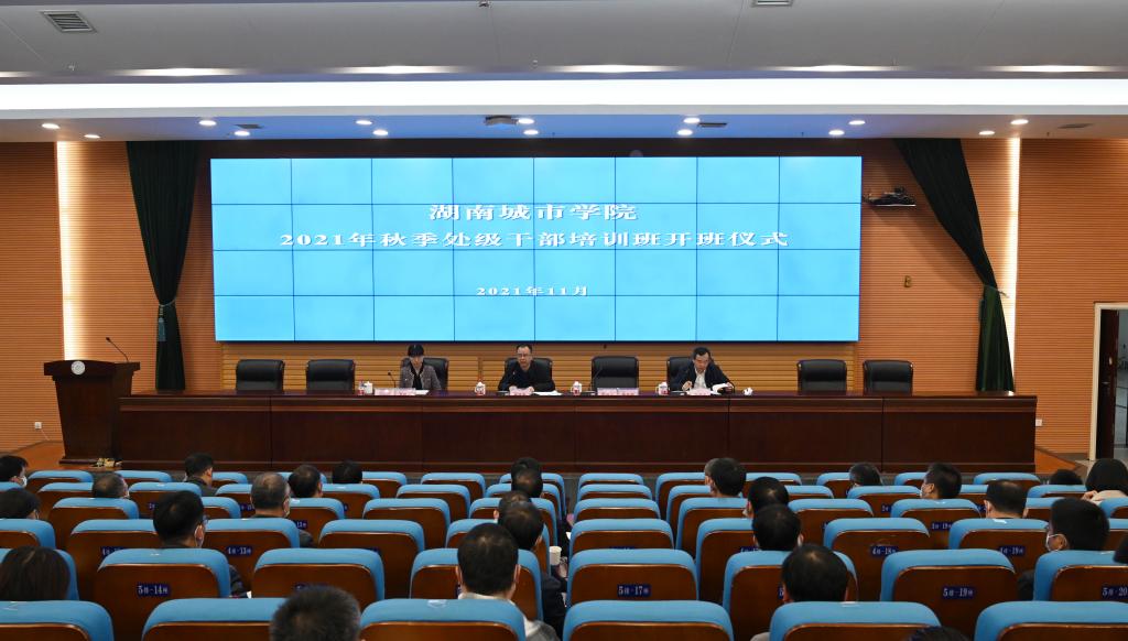 本网讯(记者 文彦波 摄影 博夕 周雨晨 邱元龙)为增强干部的责任感和使命感,提高干部的专业能力和专业精神,进一步落实好第四次党代会精神、推动“十四五”开好局,2021年11月6日—7日,我校在图书馆报告厅举办2021年秋季处级干部培训班。培训班邀请了省委党史研究室原主任、省政府参事张志初,湖南农业大学党委书记陈弘,湖南师范大学原校长刘湘溶,省委教育工委党校常务副校长刘国华,省委党校哲学教研部主任何良安,学校纪委书记陈列尊等校内外专家作了专题报告。全体处级干部参加了学习。党委书记李建奇出席开班仪式、结业仪式并发表讲话,党委副书记何旭娟和党委委员、组织部部长吕贤军分别主持了部分场次报告。