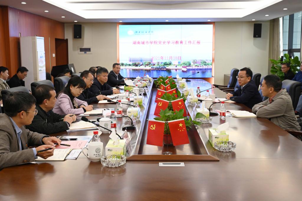 本网讯(记者 文彦波)2021年11月18日,省委教育工委党史学习教育第七巡回指导组组长、省教育厅党组成员、省委教育工委委员刘静,副组长、省教育厅维稳办主任张平来校指导党史学习教育工作。党委书记李建奇,党委副书记、校长汤放华以及学校党史学习教育领导小组成员、办公室全体成员参加座谈会。汤放华主持会议。