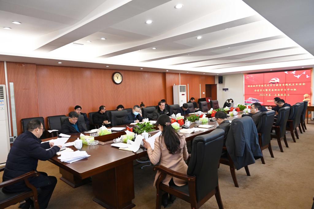 学习会上,党委副书记何旭娟领学了习近平总书记在中共中央政治局专题民主生活会上的重要讲话和习近平总书记在省部级主要领导干部学习贯彻党的十九届六中全会精神专题研讨班开班式上的重要讲话精神。党委委员、副校长袁志成领学了《习近平总书记教育重要论述讲义》第三讲《推动党和国家各项事业发展的重要先手棋——坚持优先发展教育事业》。党委宣传部部长贺正宜传达了中央党史学习教育总结会议、湖南省委党史学习教育总结会议精神。