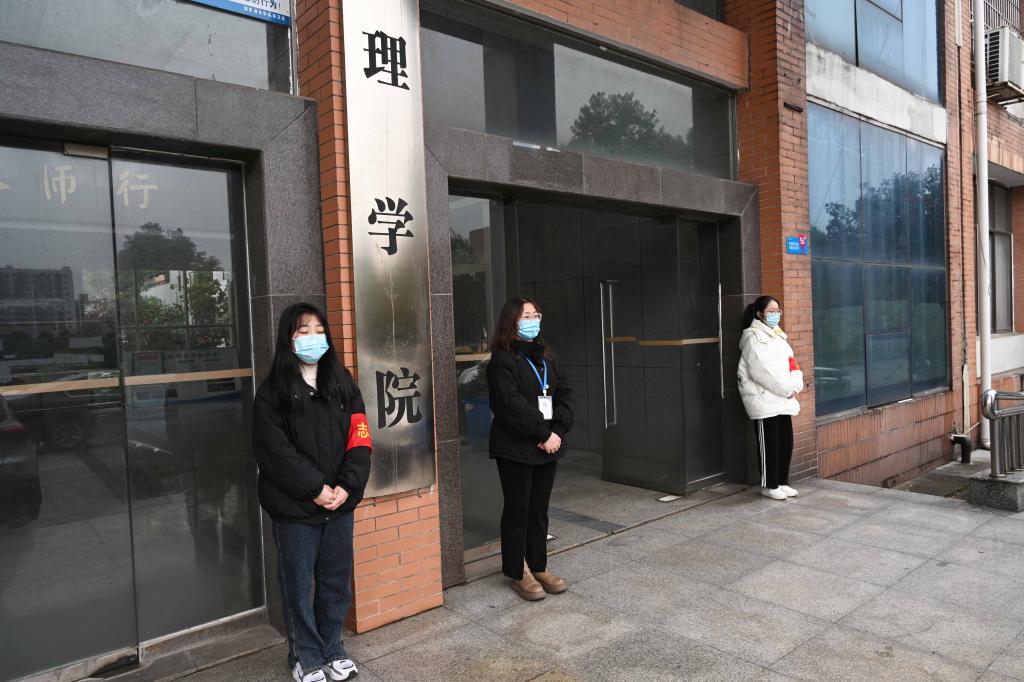 “您好!请出示证件,戴好口罩,用手机扫场所码,测量体温后再进学校。”每天早上,这样紧张有序的场景都会在学校南门和北门反复出现,保安人员、党员志愿者坚守在岗,对每一位进出校园的人员进行排查检查,确保不漏一车,不落一人。“学校要求外来车辆与人员非工作需要一律禁止进入校园,教职工凭校园卡经检查合格后方可进入,学生须持请假条方能进出,这样就从源头上把好了疫情防控的第一道关口。”学校保卫处相关负责人表示。