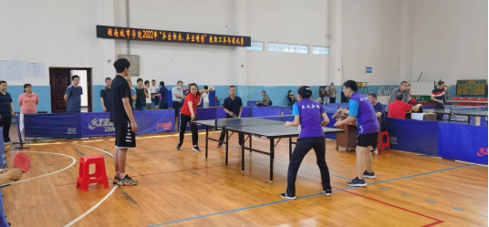 本网讯(通讯员 周敏)4月23-24日,由学校工会主办、体育学院协办的2022年“乒出快乐,乒出精彩”教职工乒乓球比赛在体育训练馆如期举行,17个代表队近200名乒乓球爱好者参加了比赛。