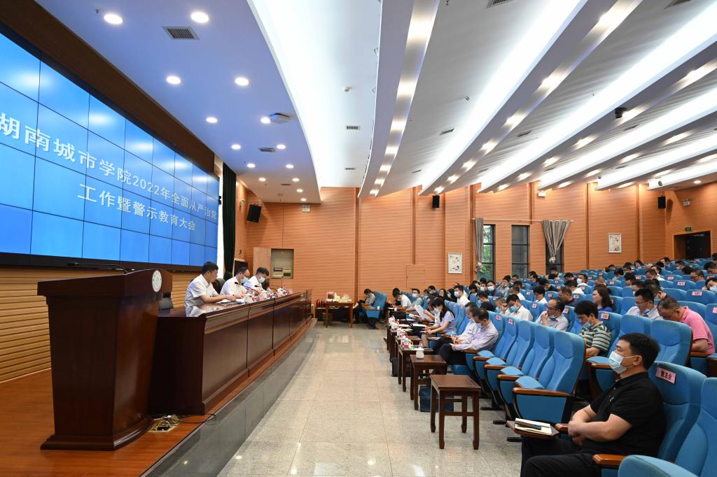陈列尊作了题为《发扬自我革命精神 聚焦清廉城院建设 为学校高质量发展提供坚强保障》的工作报告。从加强理论学习,坚定政治方向;聚焦“两个维护”,提升监督质效;聚焦政治巡视,推动整改落实;深化纠治“四风”,做好专项整治;一体推进“三不”,精准执纪问责;着力深化“三转”,锻造执纪铁军等六个方面,对2021年学校纪检监察工作进行了回顾和总结。