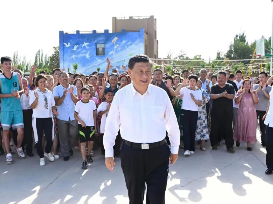 习近平总书记走访新疆西门村。