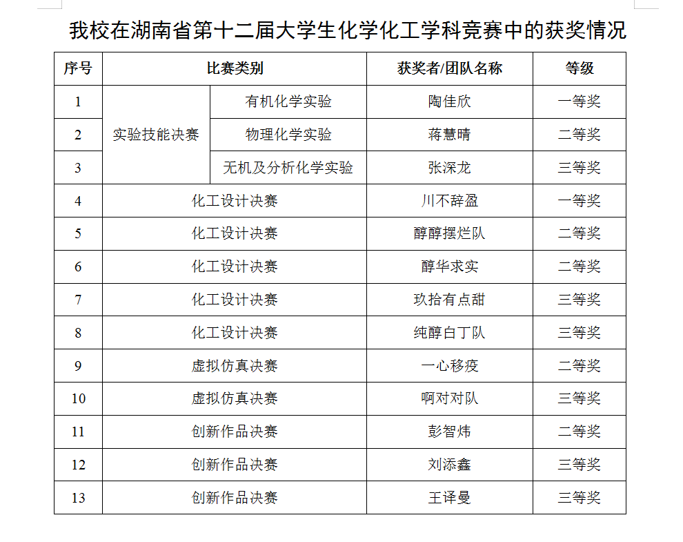 我校在湖南省第十二届大学生化学化工学科竞赛中荣获佳绩