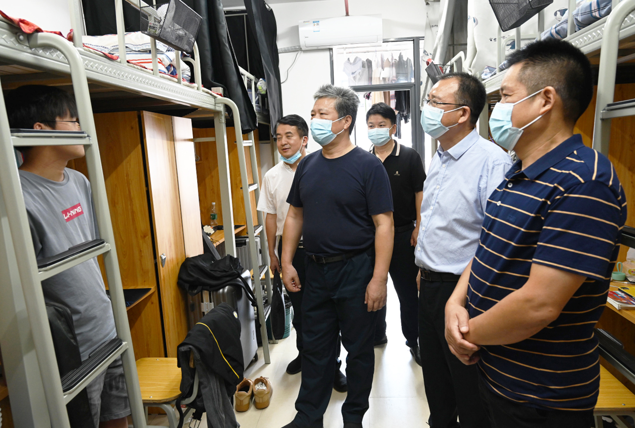 会后,曾四清一行实地察看了我校第一食堂和部分学生宿舍的住宿环境。