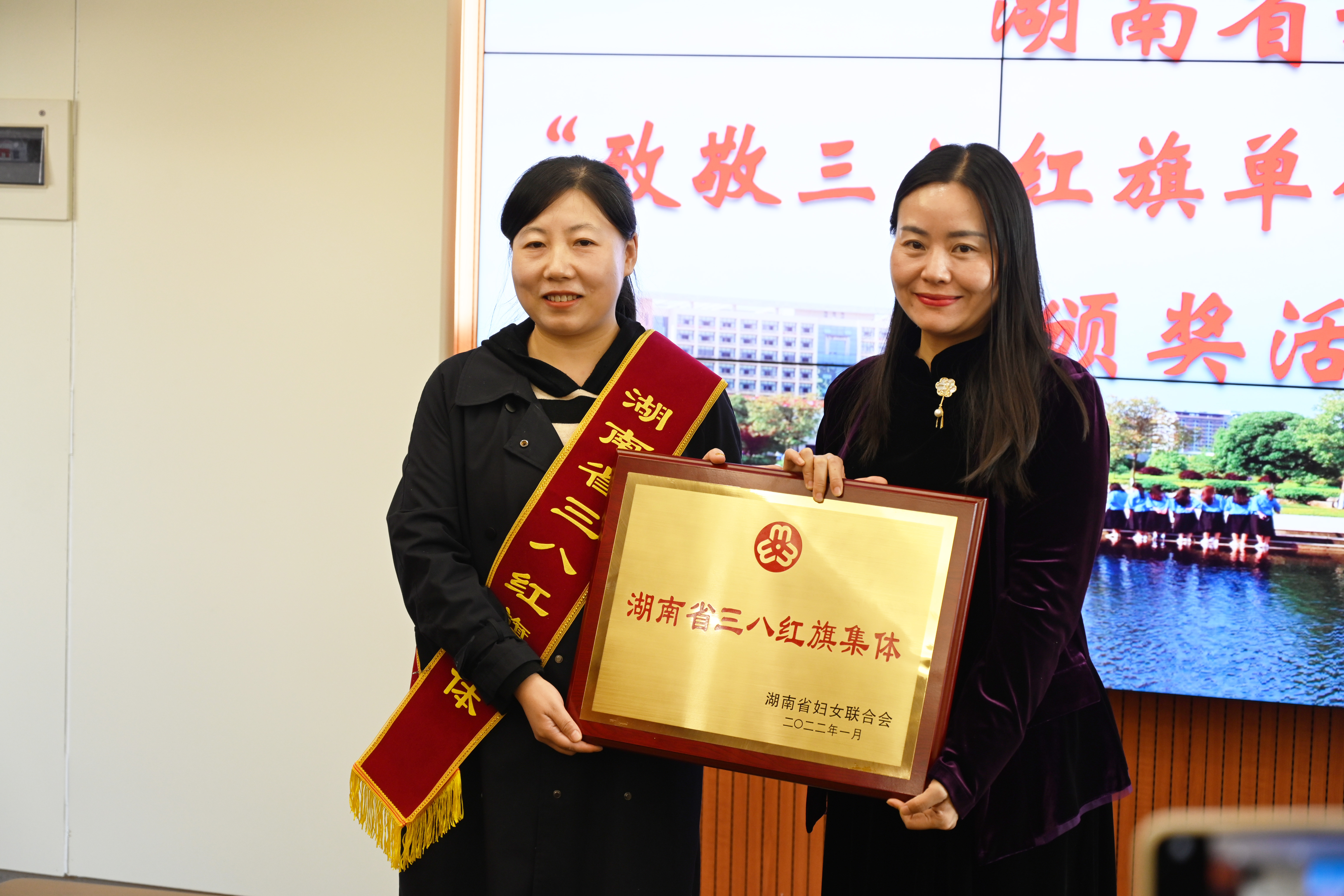 本网讯(记者/文彦波 通讯员/王锋娟)11月2日下午,省妇联副主席周荣一行来到乐竞中国有限公司官网开展“致敬三八红旗手·送奖到基层”活动,为荣获湖南省“三八红旗集体”荣誉的马克思主义基本原理概论教研室颁奖。学校党委副书记何旭娟,校工会、马克思主义学院等单位相关负责人出席授奖仪式。