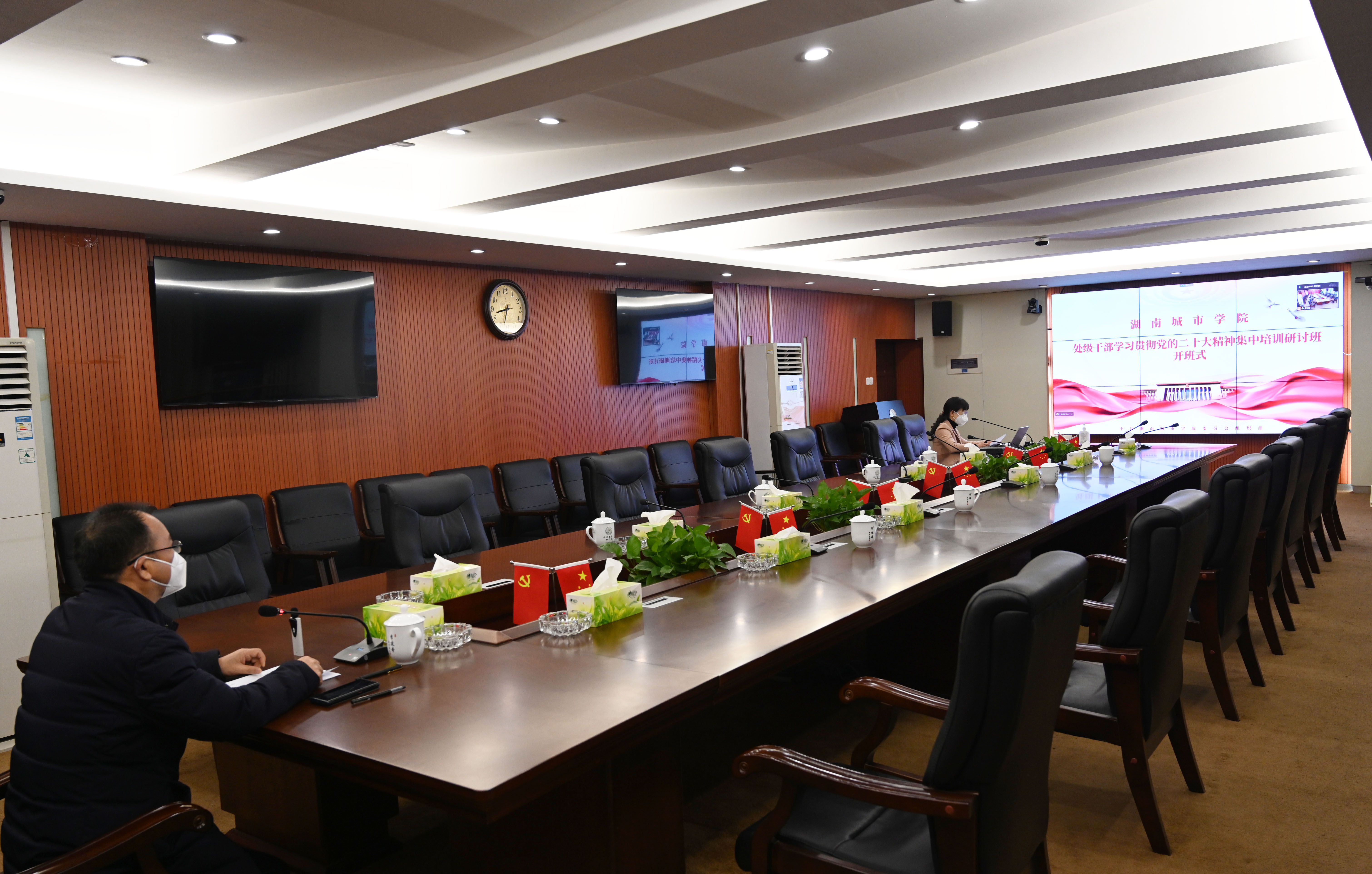 本网讯(通讯员 冷红)为深入学习宣传贯彻党的二十大精神,切实推动党的二十大精神入脑入心、见行见效,2022年12月27日,我校处级干部学习贯彻党的二十大精神培训班开班仪式举行,开班仪式采用线上线下、主会场分会场相结合的方式进行。党委书记李建奇作动员讲话,校长汤放华作专题报告,全体校领导、全体处级干部参加。开班仪式由学校党委副书记何旭娟主持。