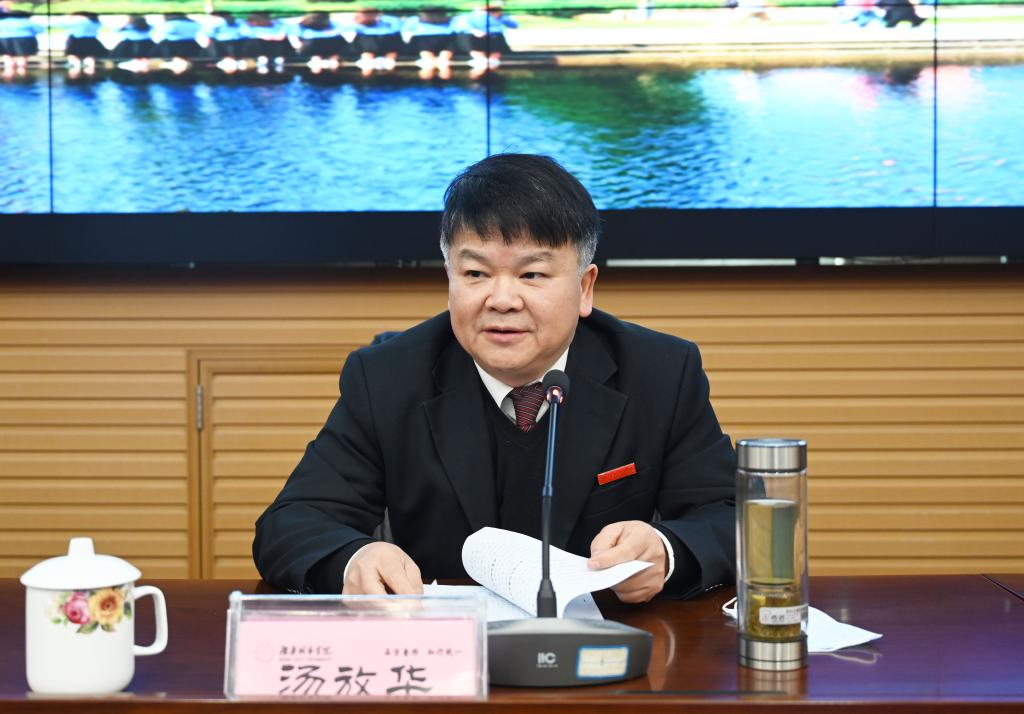 汤放华强调,要坚持不懈用习近平新时代中国特色社会主义思想和党的二十大精神武装干部师生头脑、指导学校高质量发展实践。要坚定不移的推进全面从严治党向纵深发展,全面巩固风清气正的校园政治生态。要加强人才、教学、科研和学科一体统筹推进,实现学校内涵式高质量发展。